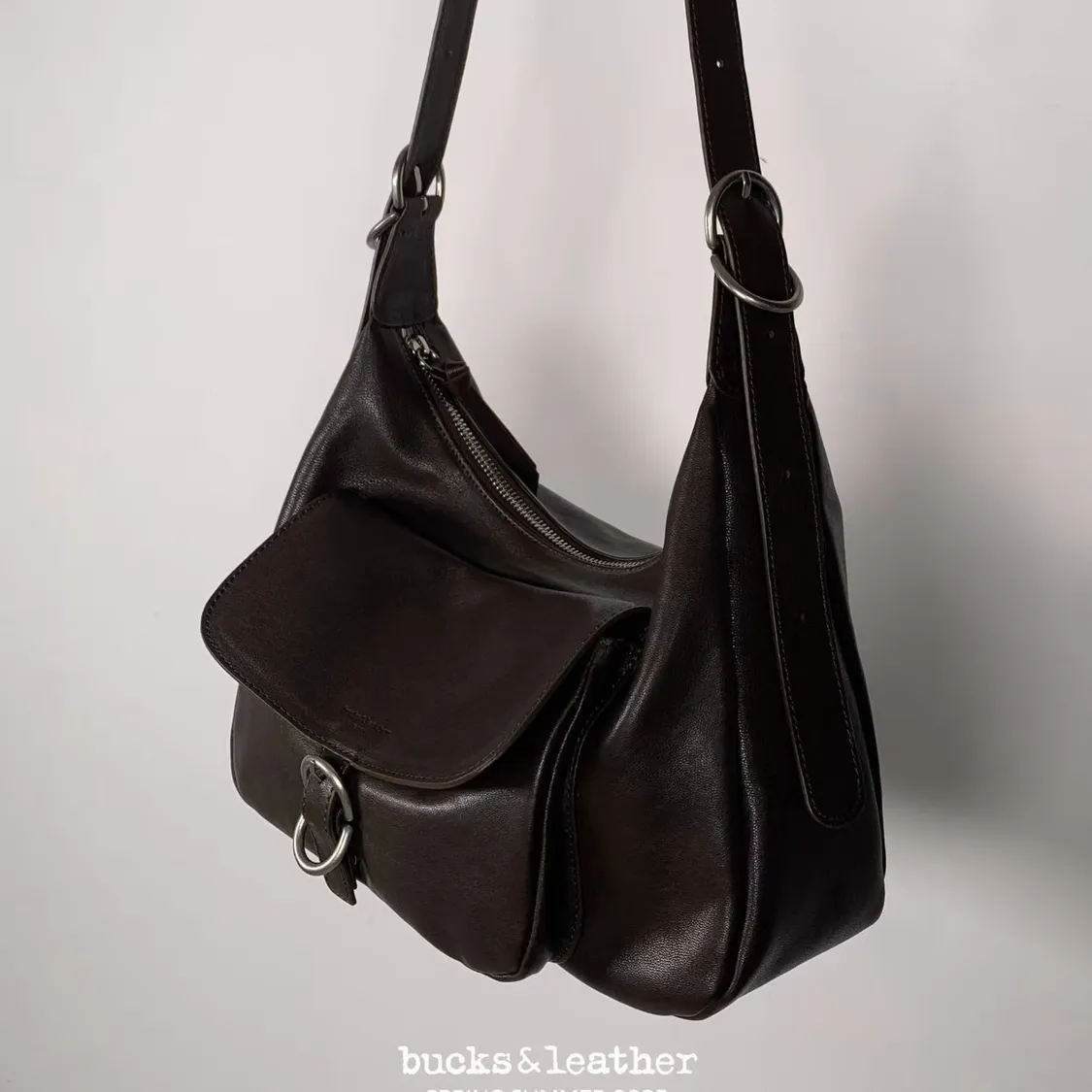 整顆包是柔軟羊皮,皮感偏軟、自然垂墜,