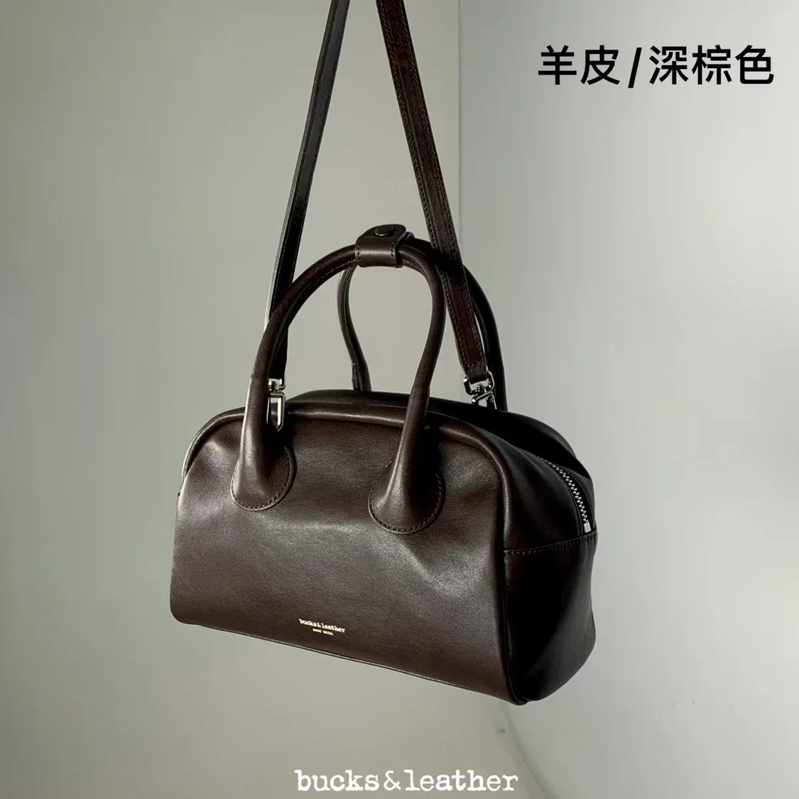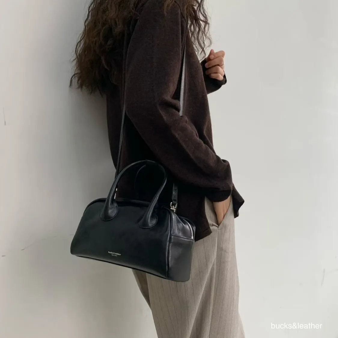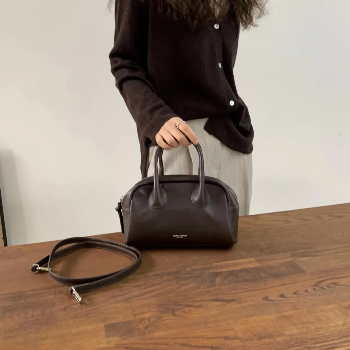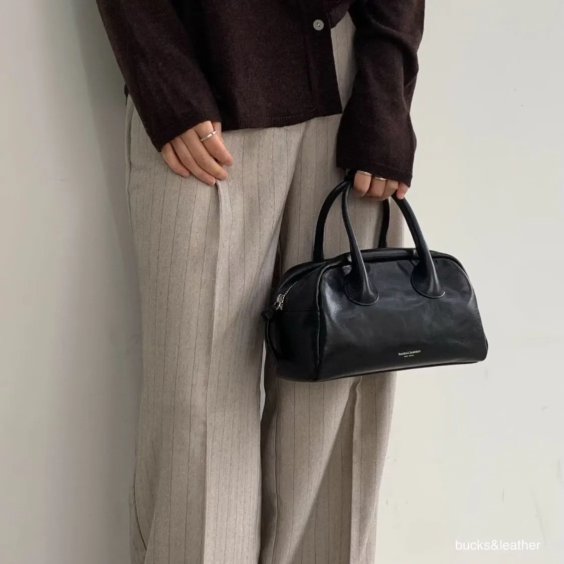 偏寬的保齡球包版型,線條乾淨、帶點輕法式感, 不會過度硬挺,也不是軟趴趴那種拿在手上很好看,非常有質感。 尺寸(單位CM/F) 底長24 / 高14 / 厚度12 / 手把高8 有附背帶(背帶不可調) (手工測量 ±1–3cm 誤差屬正常範圍) *提醒 ・基於螢幕顯示不同皆有些微色差 商品顏色以實物為主 ・皮革商品會有自然紋路、摺痕,屬正常現象