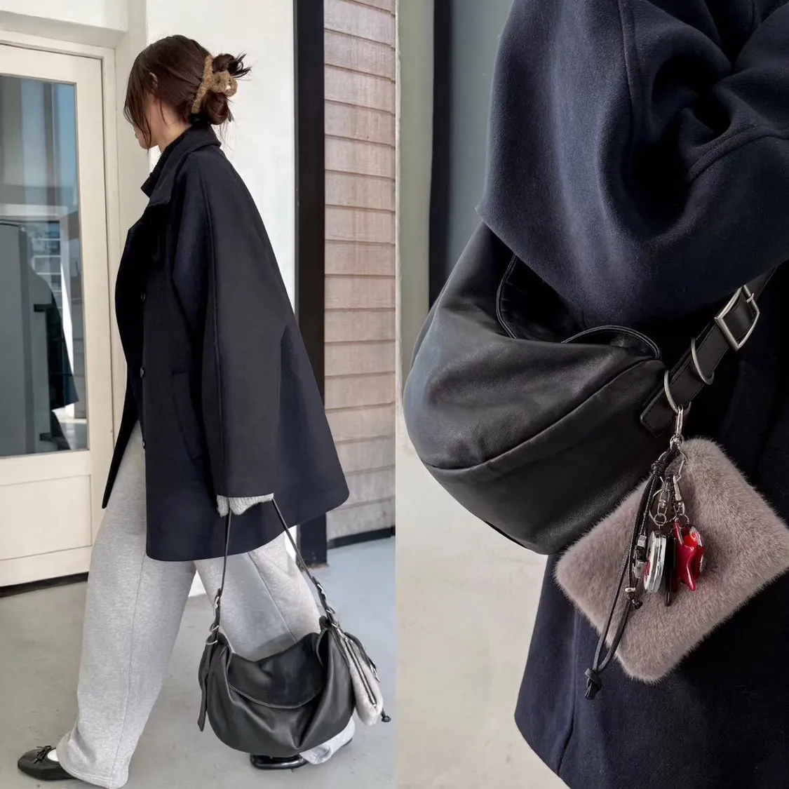 肩背長度可以調整,腋下背或微斜背都好看,搭西裝外套、針織、運動棉褲都不違和,是那種 穿搭怎麼變都能搭得上的包。