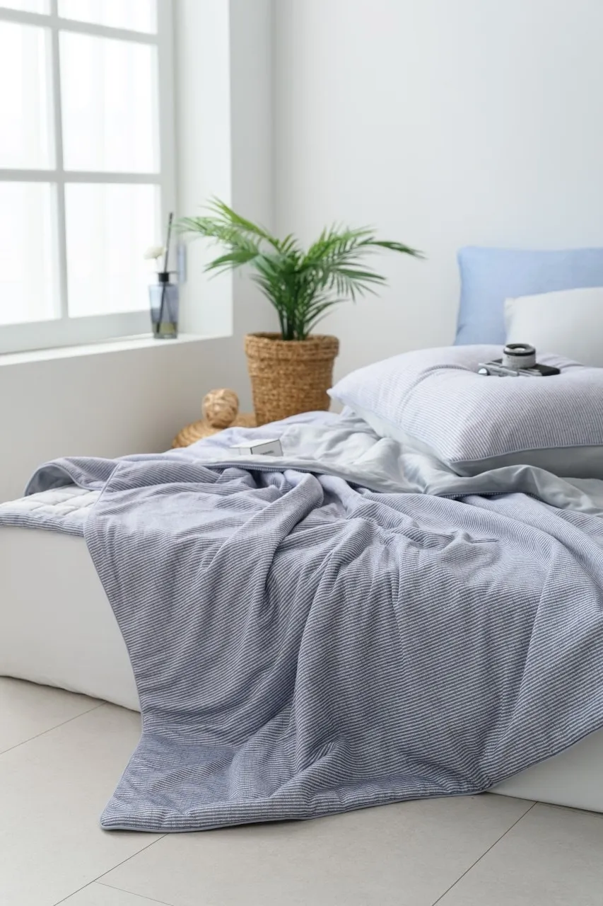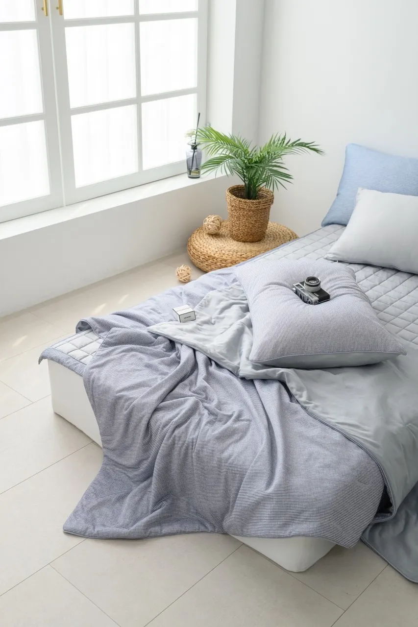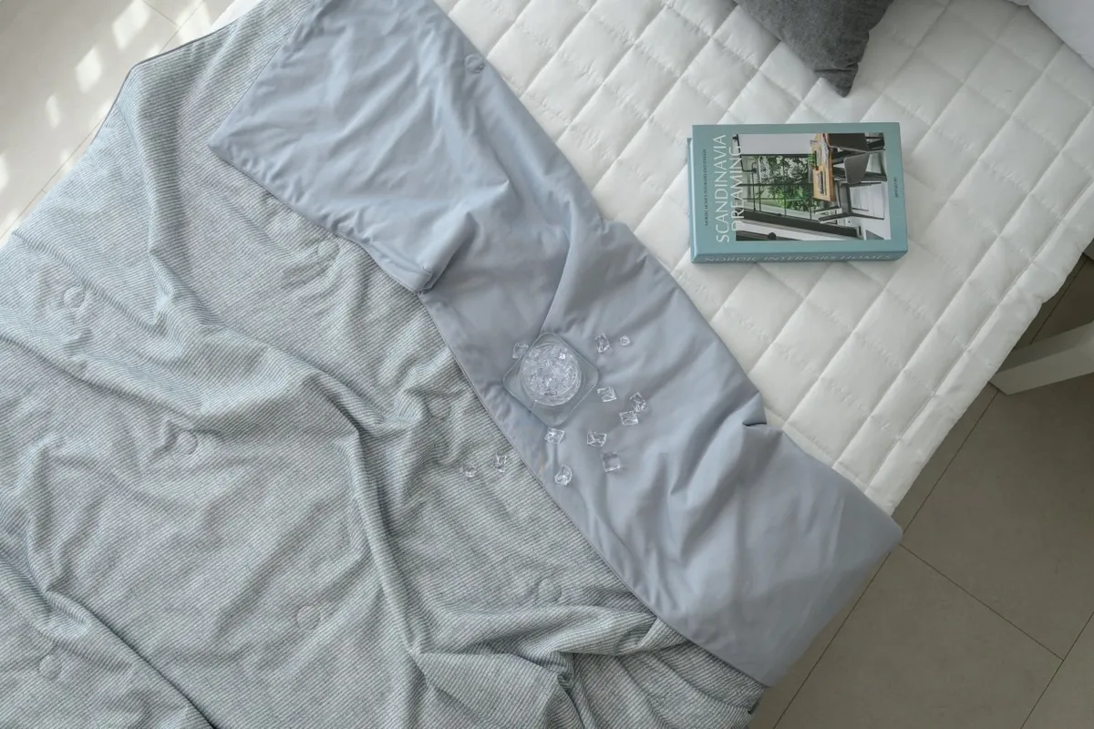 這款來自韓國2025最新款的「-7.9度涼感被」,使用涼感紗纖維製成,輕盈柔軟、透氣親膚