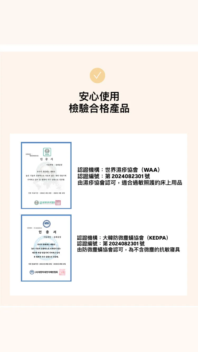 通過「大韓防微塵蟎協會 KEDPA」認證,塵蟎阻隔效果佳