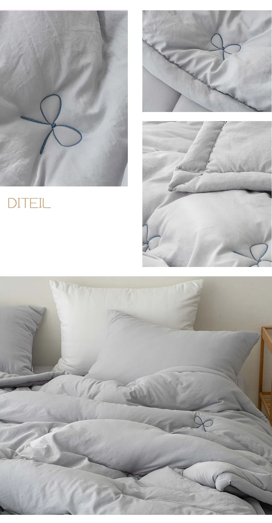 整體為簡約莫蘭迪素色,搭配繡上立體蝴蝶結點綴