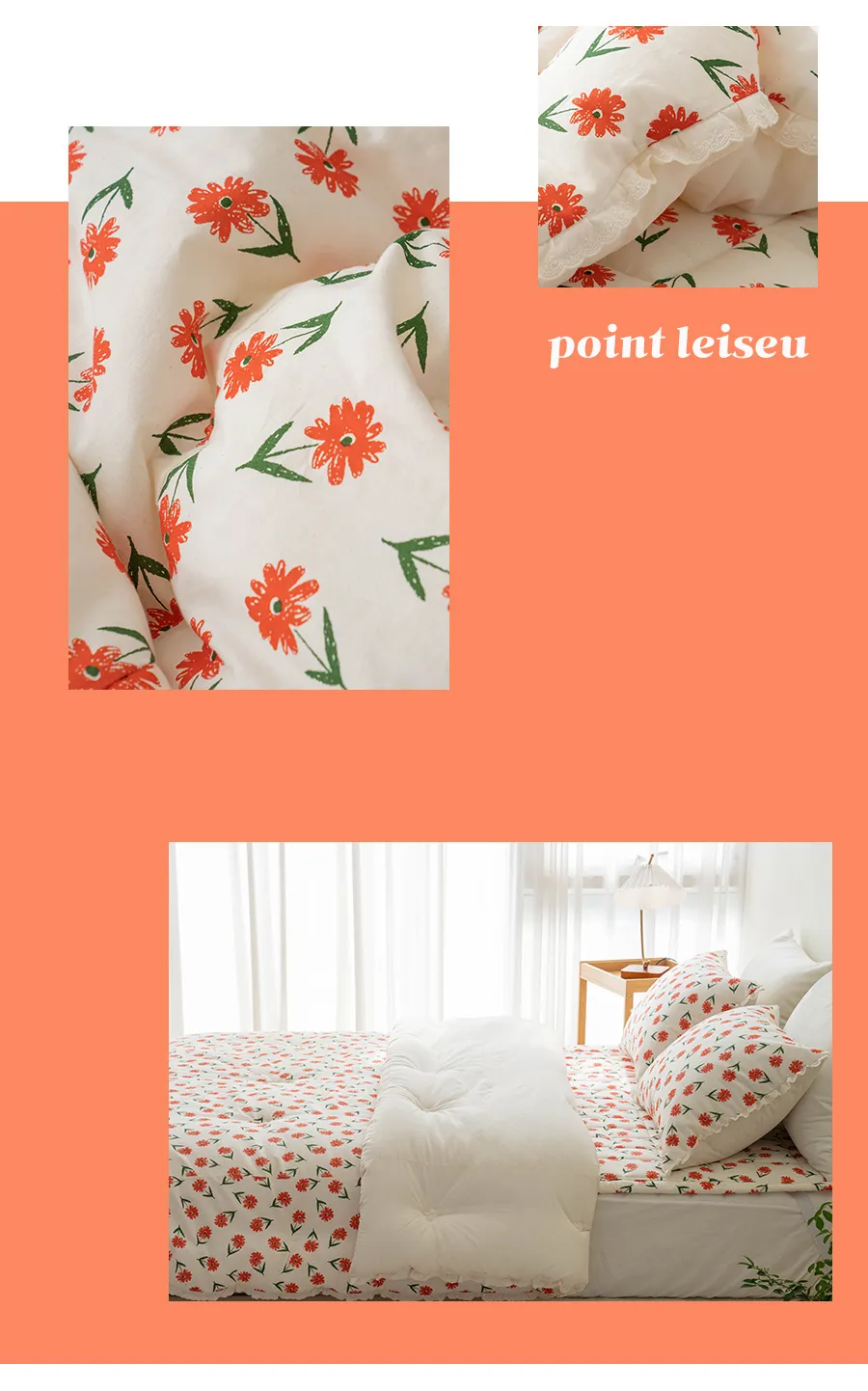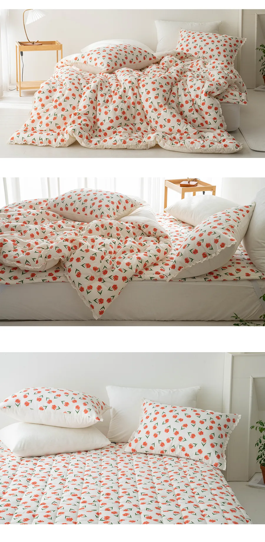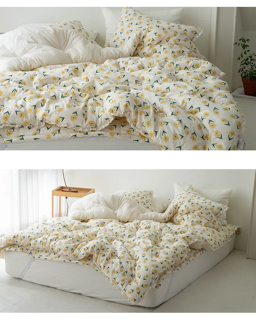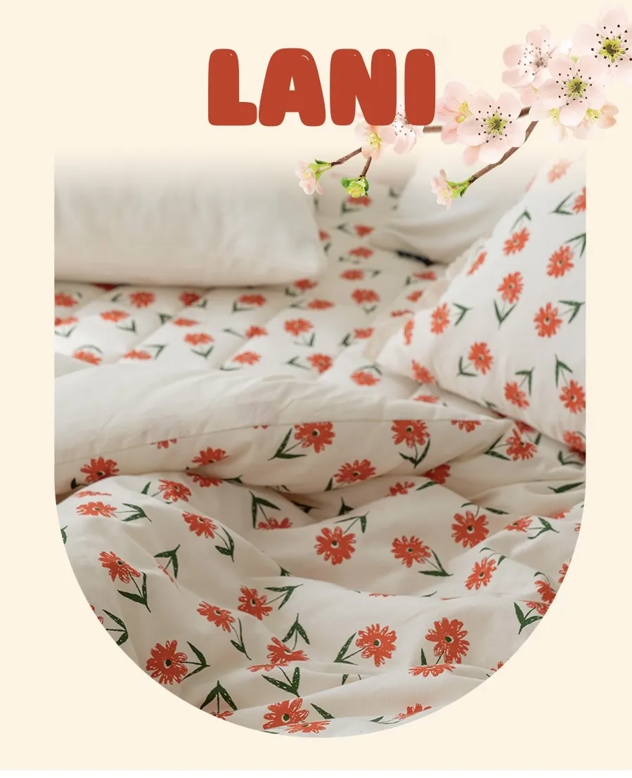 這款來自韓國廣藏市場的LANI棉被系列,以「30支紗天然棉布」打造,搭配活潑的手繪花卉圖案