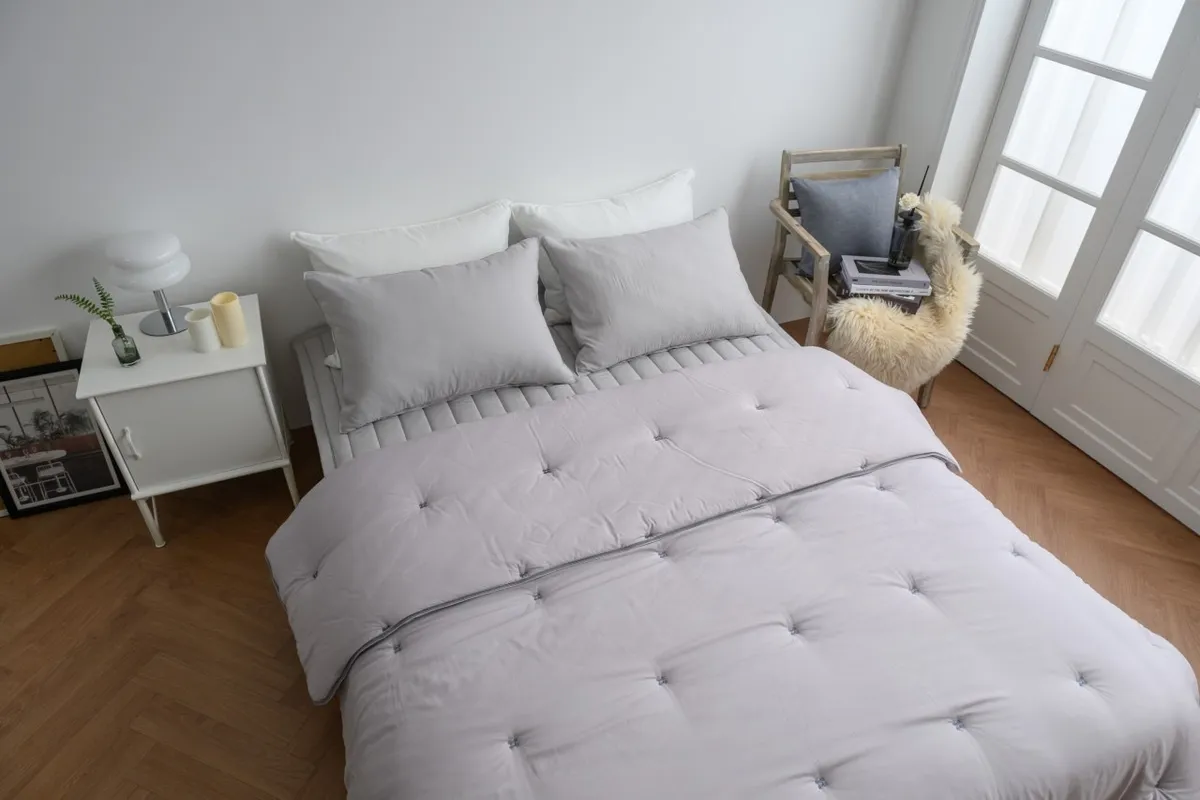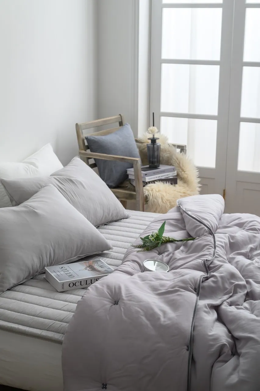 • 帶有自然霧光質感,不黏膩、不悶熱,夏天也能安心蓋