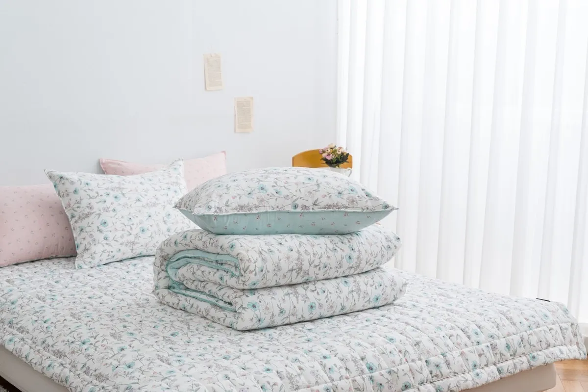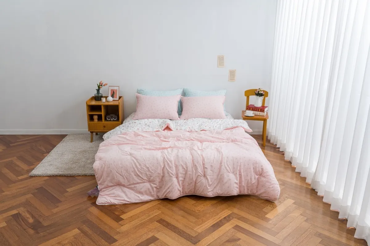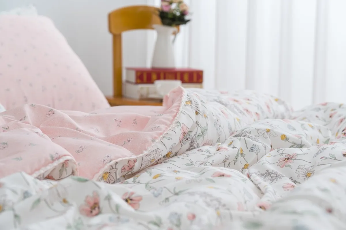 這款來自韓國廣藏市場的Glory花花四季被,以天然膠原蛋白天絲製成,搭配粉嫩小碎花與雙面設計(內層為同色系碎花磨毛布),柔滑親膚到讓你一夜好眠,睡了真的回不去!