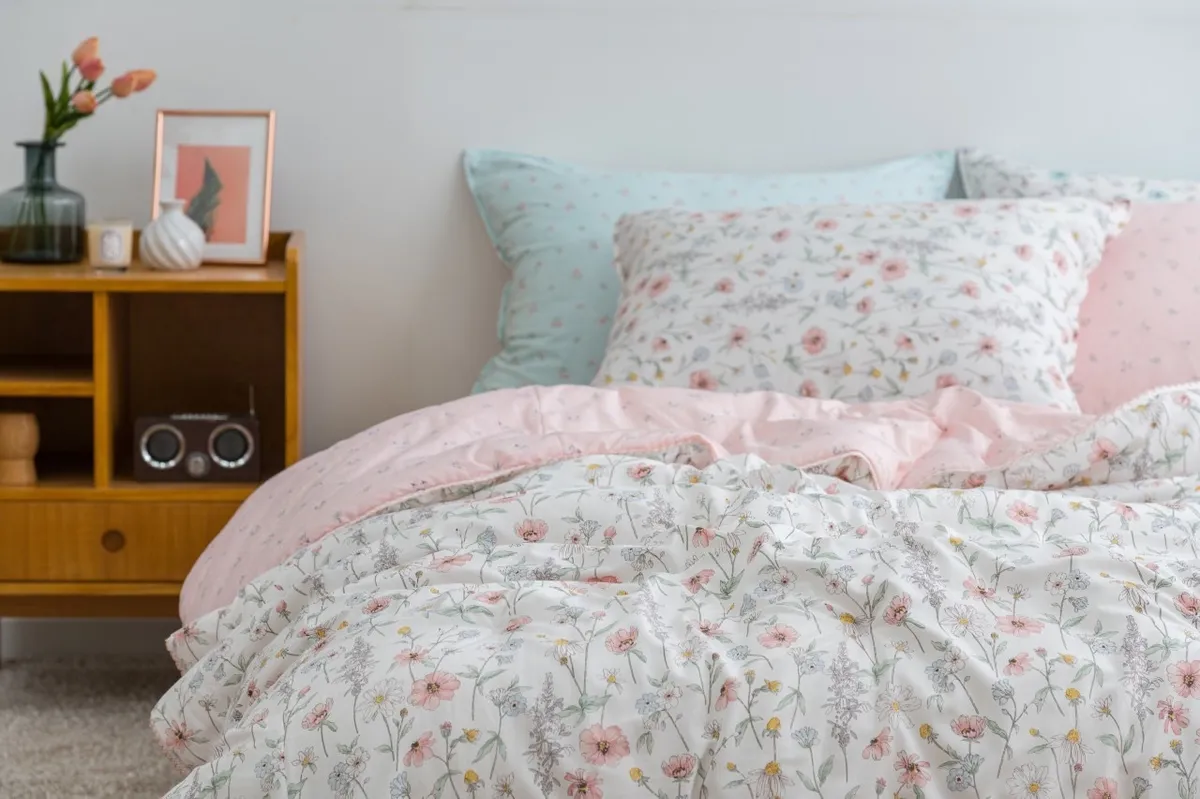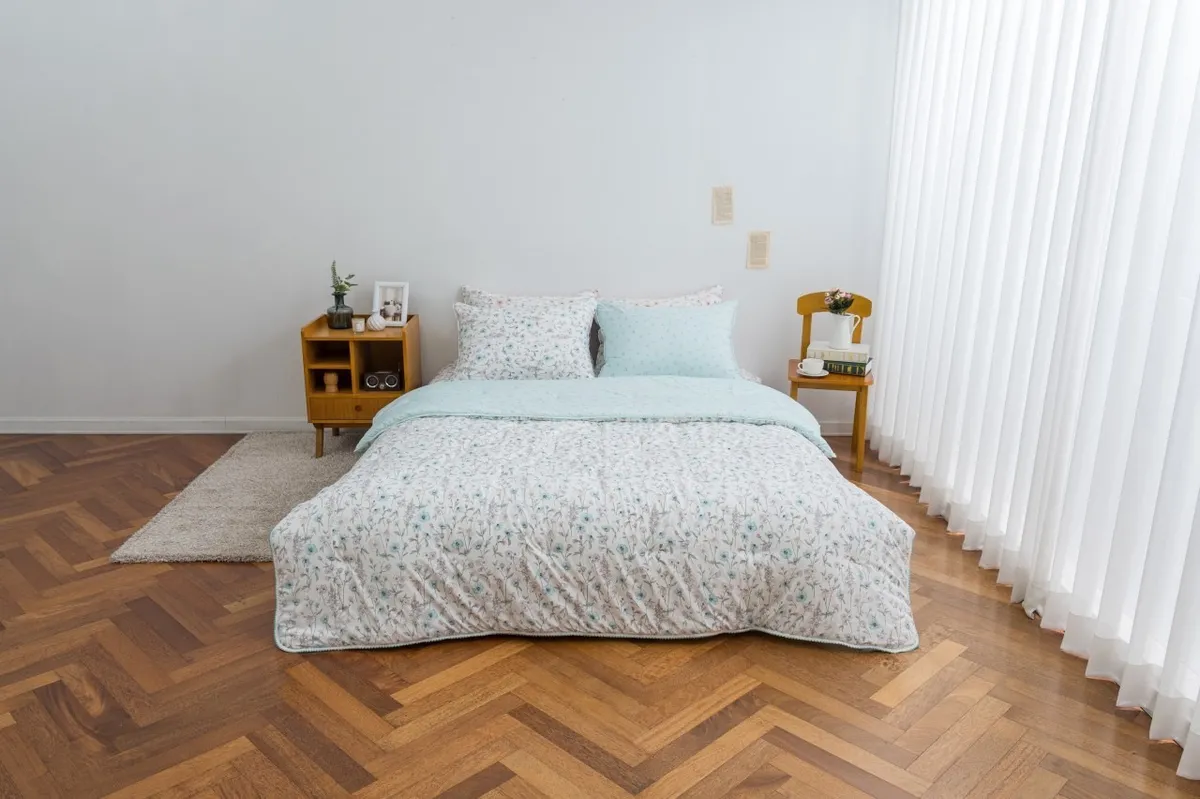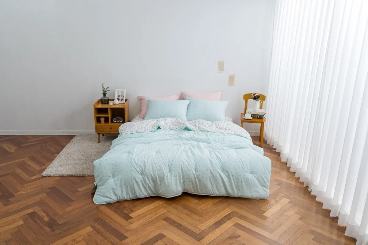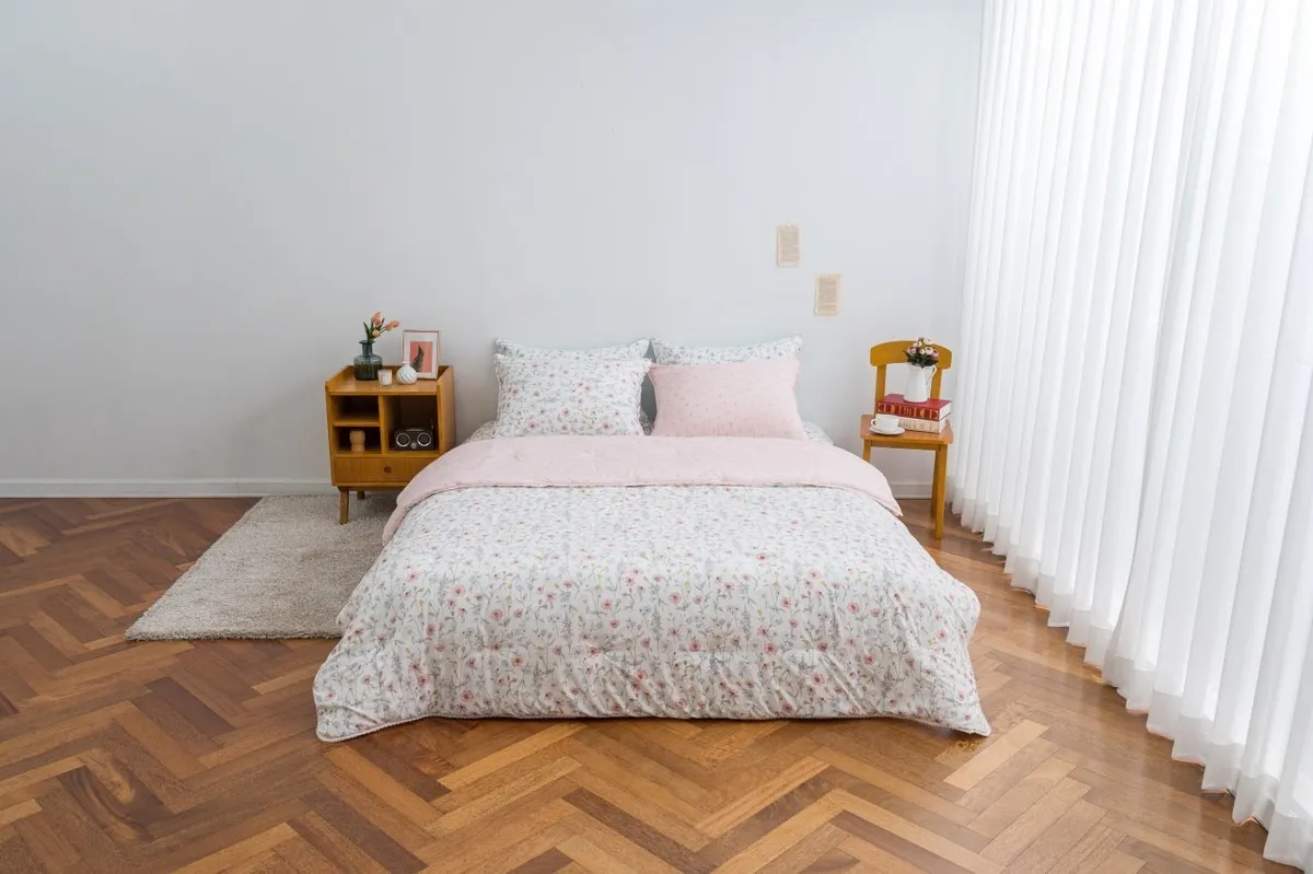 這款來自韓國廣藏市場的Glory花花四季被,以天然膠原蛋白天絲製成,搭配粉嫩小碎花與雙面設計(內層為同色系碎花磨毛布),柔滑親膚到讓你一夜好眠,睡了真的回不去!